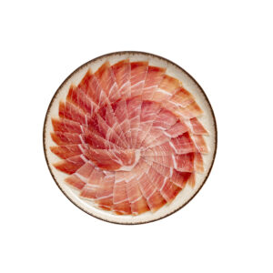 El jamón debe servirse a temperatura ambiente para disfrutar plenamente de su aroma y sabor. Cortar las lonchas finas y servir en un plato amplio.